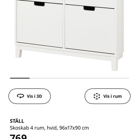 Praktisk og stilrent IKEA STÄLL skoskab i hvid farve.