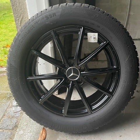 Et rigtig fint sæt passende til en Mercedes GLC. Monteret med nye sommerdæk. En fælg har lidt ir i lakken. Se billeder for stand og info. Ref nr 876