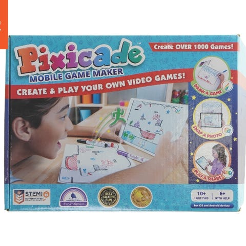 Pixicade Mobile Game Maker er et kreativt sæt, der giver børn mulighed for at skabe og spille deres egne videospil. Sættet inkluderer 3 bøger med over 100 spilidéer og aktiviteter, samt 5 vaskbare tuscher til at tegne spil på almindeligt papir. Ved hjælp af en app kan brugerne tage et billede af deres tegning, tilpasse spillet, og dele det med venner. Pakken er velegnet til både iOS og Android enheder og anbefales til børn fra 6 år med hjælp, eller 10 år og op selvstændigt.