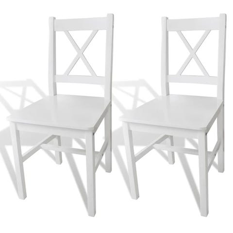 Spisebordsstol, Hvidmalet fyrretræ, Pæne og dekorative hvidmalede spisebordsstole med høj ryg og stofsæde sælges for kr. 75,- pr. stk.