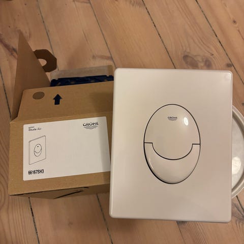Grohe Skate Air toiletknap i hvid farve. Produktet er designet til brug med hængetoiletter og har et enkelt og funktionelt design. Helt ny og i original æske.