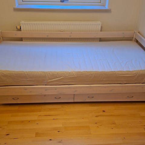 Køb evt. begge madrasser, enkeltseng og skuffen for 1.200 kr. (ny pris 5.623 kr. - efter overkøjen er trukket fra.)