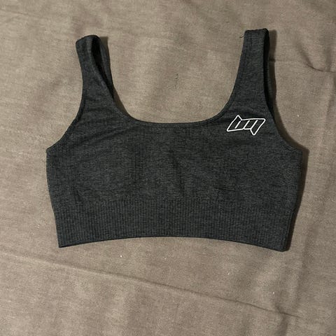 Mørkegrå træningstop fra GAP Fit. Brugt og ekstra vattering er taget ud.