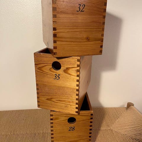 Smuk og autentisk sættekasse i massivt træ med mange rum i forskellige størrelser – oprindeligt brugt til opbevaring af blybogstaver i trykkerier. Har tydelig patina og spor af brug, som giver masser af karakter og historie.