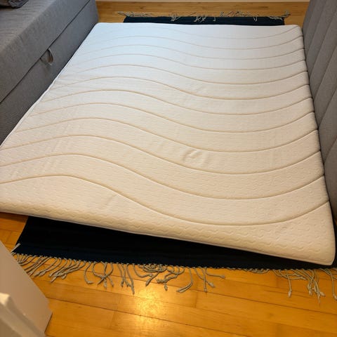 Topmadrassen har altid været brugt med beskyttelsesbetræk, og er derfor velholdt, ren og uden lugt.
