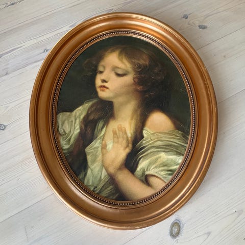 Tysk stålstik-tryk af et russisk ikon “Vladimirskaja” i guld ramme