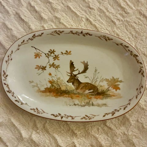 Dåhjort fad med jubilæum påbagsiden kr 1.200.