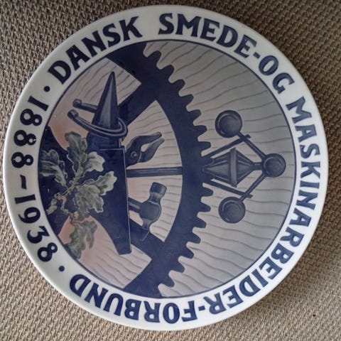 Royal Copenhagen Jubilæumsplatte Dansk Smede- og Maskinarbejderforbund 1881-1938
