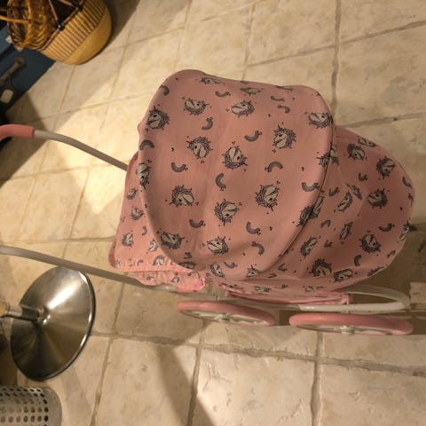 Fin lille dukkevogn inkl. “madras”, pude og dyne samt Cirkeline dukke.