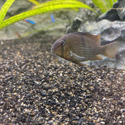 Sælger min voksne albino oskar cichlide da den bliver jagtet for meget af mine andre oskar cichlider. Han er super stille og rolig. Ca 25 cm