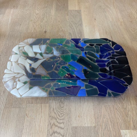 Flot blåt glasfad.