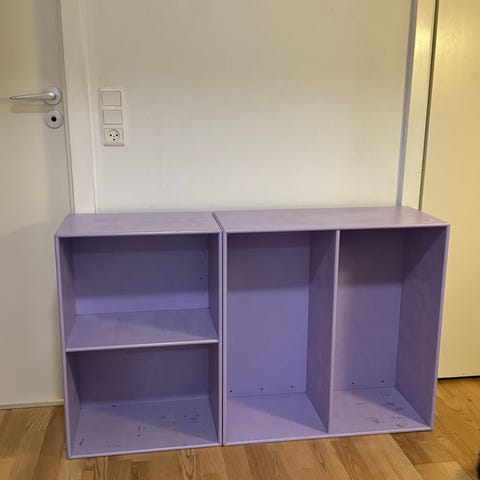 Grå Montana reoler med patina, mål: L: 69,6 x H: 69,6 x D: 30 cm, pris: 450 kr pr/stk - samlet salg foretrækkes