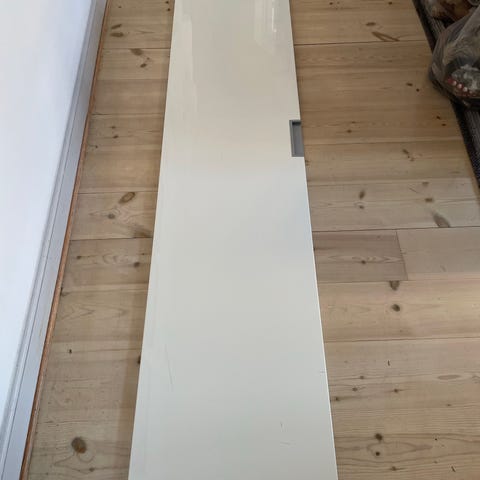 Bemærk at den øverste hængsel på det ene skab er i stykker og skal fastsættes andet sted.