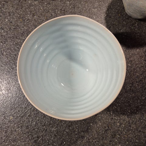 Lustre/lystre porcelæns kop med blåt bånd.