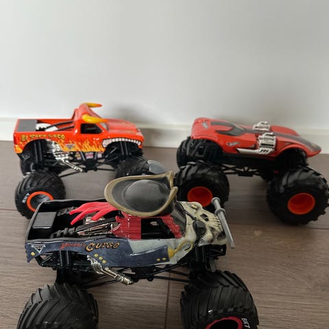 Hot Wheels Monster Trucks legetøjsbiler i forskellige farver med store hjul designet til børn. Sættet indeholder flere unikke modeller med detaljerede dekorationer og robuste dæk.