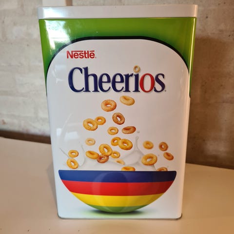 Original Nestlé Cheerios dåse med flot retro design – ideel til samlere eller som dekorativ opbevaring.