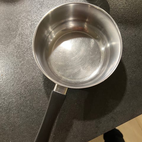 IKEA gryde i rustfrit stål med sort håndtag. Gryden er velegnet til opvarmning og kogning af madvarer og væsker. Materialet i rustfrit stål sikrer holdbarhed og nem rengøring.