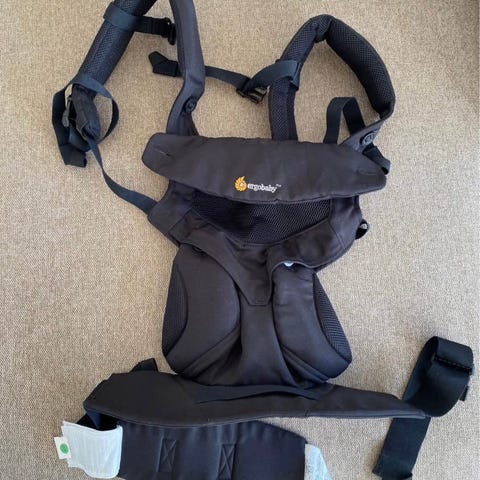 Ergobaby bæresele i sort farve. Designet til at bære babyer sikkert og komfortabelt. Fremstillet af holdbart materiale med justerbare stropper for tilpasning til brugerens behov.