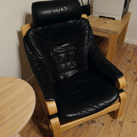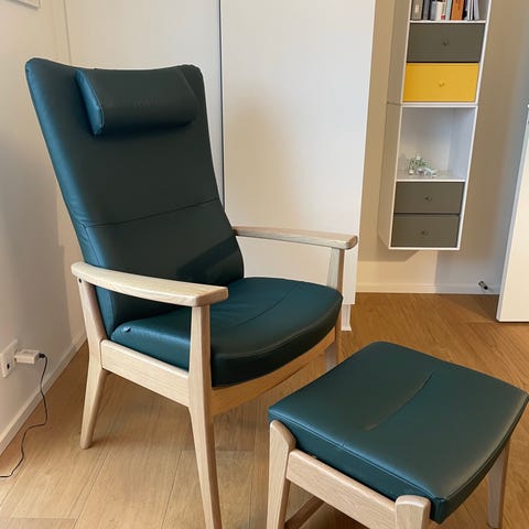 læsestol læderstol Aarhus hyggestol mancave cigarstol bibliotek kaffehjørne benene op på fodskammel tvstol i klassisk design highback chair classic skandinavisk / scandinavian nordisk / nordic design