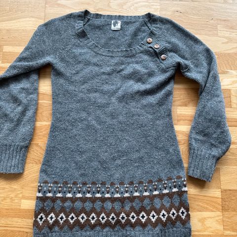 Den har 3/4 lange ærmer samt en smule struktur mønster i strikken.