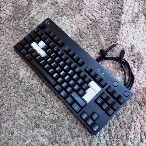 Gaming tastatur med Logitech GX Blue Clicky knapper, TKL (tenkeyless) kompakt, RGB baggrundsbelyst med 16.8 mio farver, programmerbar taster, USB tilslutning, 100% anti-ghosting fuld n-key rollover, nordisk layout.