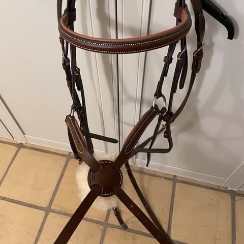 Ny trense med kryds næsebånd str. cob. Inkl. tøjler med grip. Sort