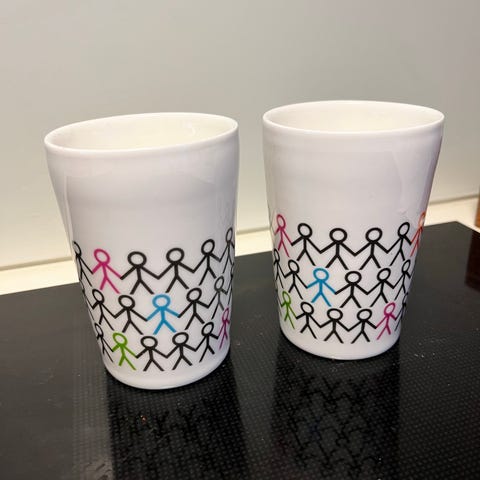 2 krus fra "Anna + Nina" med statement tekst, lige til at få smilet frem.