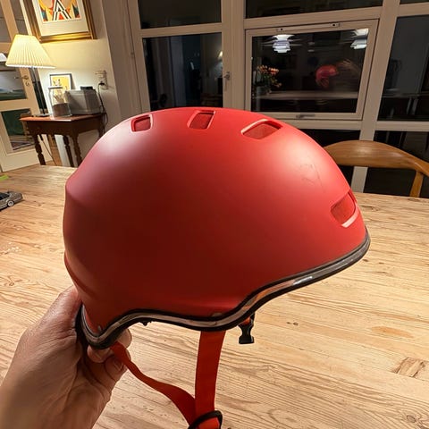 Rød Giro cykelhjelm - vær nem at finde på pisten. Størrelse large. Virker som den skal.