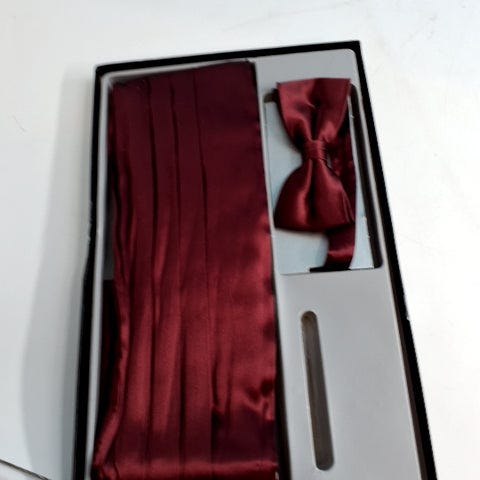 Sæt bestående af skærf, butterfly og lommetørklæde til mænd. Et sæt i ensfarvet lyserød satinlignende materiale og et sæt med mønstret design i varme farver. Passer til formelle lejligheder eller som tilbehør til jakkesæt.