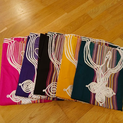 Jeg er simpelthen blevet for tynd til alle mine kjoler. De er meget smukke og håndlavet, købt i Marokko.