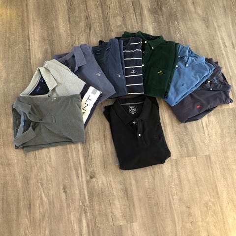 - 4 stk sort, med Henley-hals (dvs to knapper, hvid)