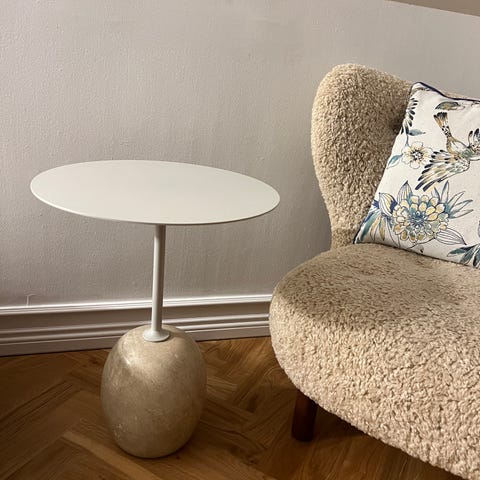 Stil: elegant designerstatement, samtidig meget anvendeligt til hverdag (kaffe, bøger, pynt m.m.)