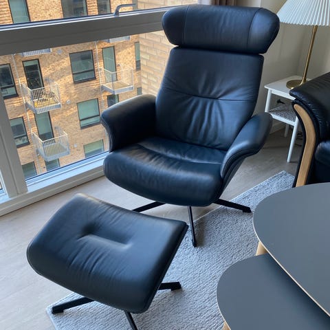Timeout lænestol med indbygget fodskammel - Sort speciel læder som er ekstra blødt og lækkert