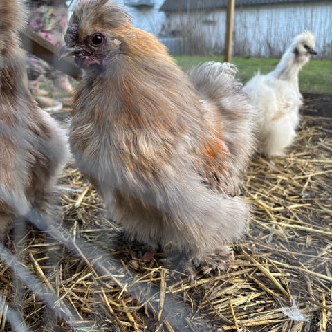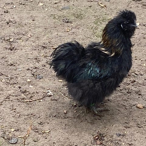 Vores søde og nysgerrige unge dværg silkehaner Jürgen og Jens (fra første uge Oktober 2025) er begyndt at gale, så vi søger nye hjem til dem 🙂 Begge kommer løbende når man kalder på dem og er ikke bange. De går frit i haven.