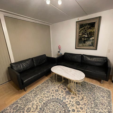 Sofa, læder, 3 pers. , Toscana, 3 pers. Sofa i hvid. L : 260 cm D : 103 cm. 3000 kr., Matchende smoked eg sofabord 116x116 cm, 1500 kr. Samlet 4000 kr. God stand.