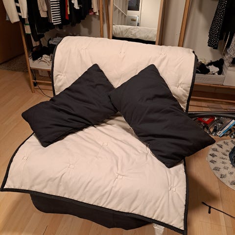 Rigtig fin sovestol. Stolen er gået lidt i stykker som det kan ses på det enebillede men fungerer stadigvæk rigtig fint både som stol og seng