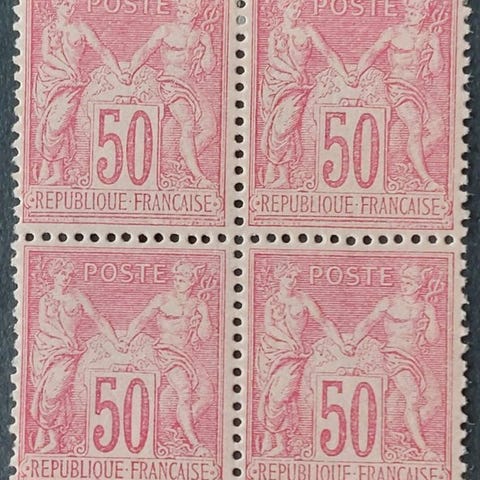 Oprindelse Frankrig, Sage, type II, 75 c. violet på orange, firedagsblok, mint med hængsel, fra 1890, Yvert 99. Klik på den blå "gå til varen" knap, for at købe eller byde på denne vare. Den samlede pris vil blive vist inden du afgiver dit bud.