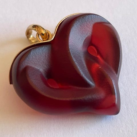 Et betagende René Lalique-krus lavet i gennemsigtigt hvidt krystal, signeret Lalique France på foden. Dette ekstravagante stykke fascinerer med sin skinnende klarhed, resonerende lyd og enestående håndværk.