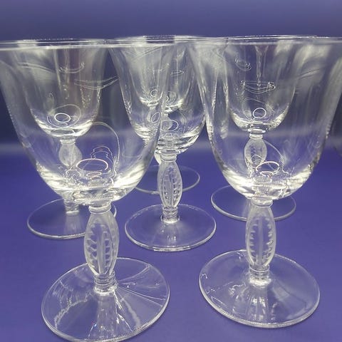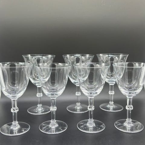 Sæt af 6 krystalvandglas i gennemsigtigt krystal fra det franske mærke Lalique. Modelnavnet er Barsac. Stelten er smukt satinfinishet og fint formet. Bredde og udstående glas i tulipanform med rund fod. Smukt, raffineret kvalitetskrystal. Alle glassene er mærket på bunden. Dimensioner: 15,7 cm i højden og Ø9,3 cm. Det blev designet af René Lalique i 1939* og var i produktion indtil 2006. Lalique er et prestigefyldt fransk mærke grundlagt i 1888, kendt for sine kunstneriske kreationer i glas og krystal.