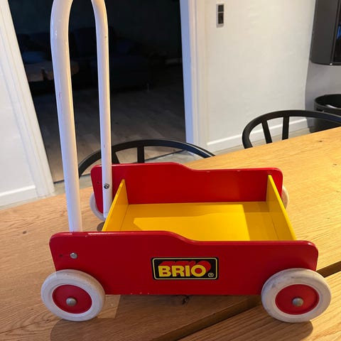 BRIO Træ Vogn i rød farve. Fremstillet i træmateriale. Egnet til børn til leg og transport af legetøj.