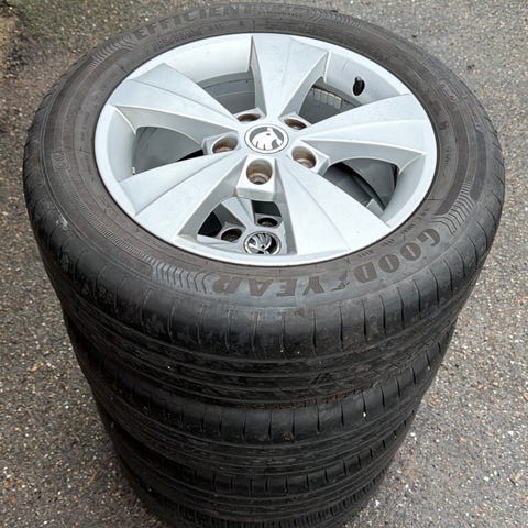 Original Skoda alufælge med sommer dæk på. 5x112 krydsmål