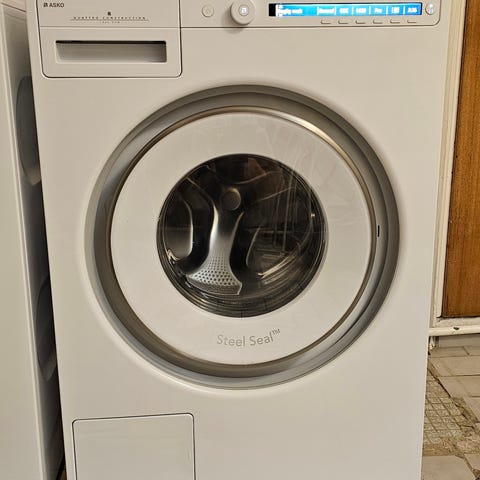 Maskine1 - hælder vaskevandet ud på gulvet, svært ved at balancere vasken. Har max kørt i 4 år. 3 nye valker medfølger. Sælges til reservedele: 900 kr