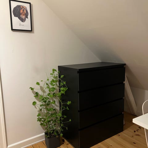 Kommode i pæn stand. Den ene skuffebund er lidt løs, men kan fastgøres.