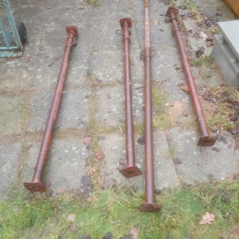 Sæt af galvaniserede palleudtræk, velegnet til industriel brug. Rammematerialet er galvaniseret stål, hvilket giver modstandsdygtighed over for korrosion. Rammens dimensioner og specifikke anvendelsesområder kan variere, og de er designet til at kunne stables og transporteres effektivt. 3 stk 1350kr