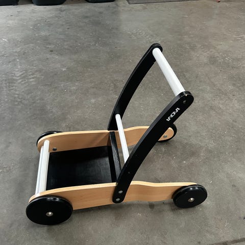 Har du et barn der næsten kan gå men bliver frustreret over ikke at kunne så hjælper denne altså - selvfølgelig skal barnet ikke sidde i den i timer men den giver altså forældre lidt arme fri :) den fungere så godt og har tre højder.