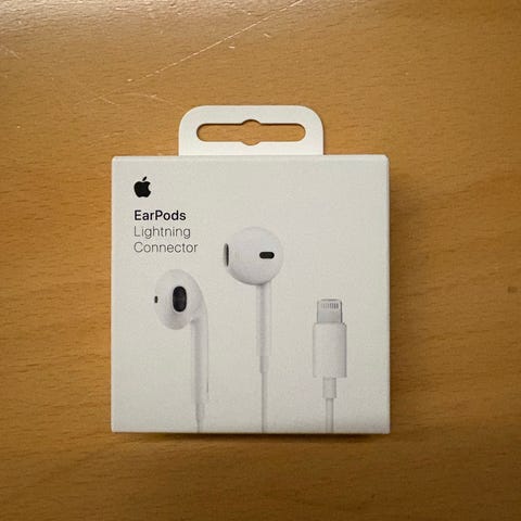Uåbnet kasse med Apple Earpods, med Lightning-stik (iPhone 14 og før)