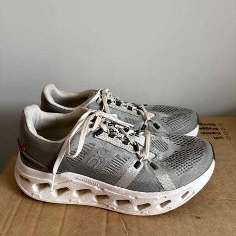 On Cloud løb sko i størrelse 44. Skoene er hvide og designet til løb.