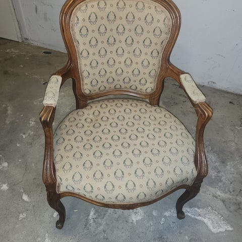 Flot solid og velholdt rokoko stol i træ med broderi.