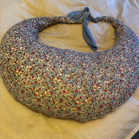 That's Mine Ammepude i måneform, designet til at støtte under amning. Puden har en blød tekstur og er formet som en halvmåne. Farven er pastelgrøn.