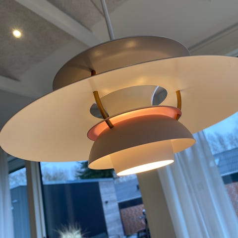 2 x PH 5 pendel. Som nye, dog med en lille bule i den ene lampe (se billede) ikke noget man ligger mærke til. Sælges samlet.